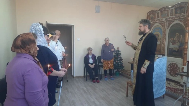 «Наш большой друг протоиерей Константин поздравил с праздником Рождества Христова проживающих. Молебен прошел в теплой обстановке, молящиеся просили здоровья для себя и своих близких, мирного светлого неба над головой», - сообщила Эльвира Равильевна.